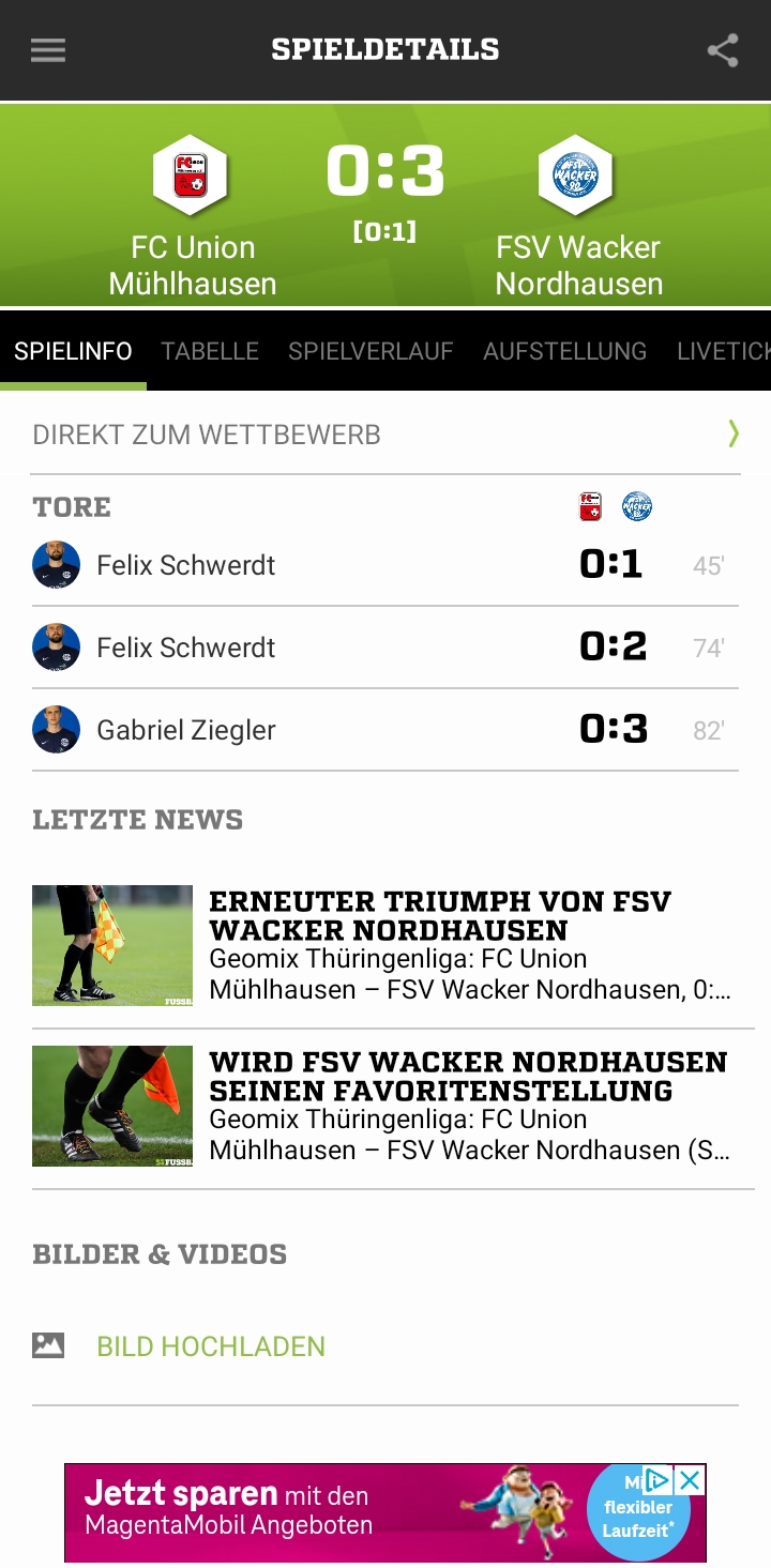 Eigentlich ist nur das Normale eingetreten, auch wenn man auf Mühlhäuser Seite ein Fünkchen Hoffnung hatte, vielleicht doch dem Favoriten in die Suppe zu spuken.Der FC Union Mühlhausen unterlag dem Aufstiegsaspiranten FSV Wacker 90 Nordhausen 0:3. Die Rolandstädter begannen wie ein Spitzenteam, sie dominierten die Anfangsphase. Das Team von Trainer Maximilian Dietz sorgte mit ihrer Spielweise dafür, das die Gastgeber nicht nur durch die warme Herbstsonne recht schnell auf Betriebstemperatur kamen. Durch ihr vorgeschobenes Anlaufen schon in der Union- Hälfte ließ man die Jungs vom Trainerduo Patrick Krumbholtz/ Andreas Ilgmann nicht zu einem geordneten Spielaufbau kommen, die Platzherren hatten zunächst wenig eigenen Ballbesitz. Das zuletzt gestiegene Selbstvertrauen des FSV gipfelte in druckvollen Angriffen, die die Angriffsreihe um Felix Schwerdt auch in Trabschlüsse ummünzte. Die beste hatte Schwerdt nach 22. Minuten aus der Distanz, die Sören Trappe glänzend parierte, den Nachschuss schlug Niklas Dittrich unter dem Jubel der vielen Fans von der Linie. Fast 500 Fans machten den letzten Septembertag bei spätsommerlichen hohen Temperaturen zu einem Fußballfest, vor allem die hundert fröhlich singenden Gästefans unterstützten die in schwarz spielenden Wacker- Akteure über die gesamte Spielzeit. „Nach den vielen Gegentreffern in beiden Gera- Duellen hatten wir vor allem auf eine verstärkte Defensivtaktik gesetzt“, begründete Union Trainer Patrick krumbholtz, warum es offensiv nicht wie sonst lief. Zwei gefährliche Freistöße von Toni Jurascheck und Tom Fränkel waren die einzigen gefährlichenaktionen vor dem Martin Vopel-Gehäuse (18./33.). Weil auf der Gegenseite Union Keeper Sören Trappe eine starke Leistung zeigte, schien die Defensivtaktik der Eisernen aufzugehen. Leider nicht ganz, denn nach einem Chipball von Elias Gorges überrascht Felix Schwerdt aus der Drehung- 0:1 (45.). „Die Mühlhäuser waren bis dahin ein frecher und unbequemer Gegner. Der Führungstreffer wirkte wie ein Brustlöser vor der Pause“, so Wacker Trainer Maximilian Dentz nach der 45-minütigen Überlegenheit mit viel Ballbesitz. Das änderte sich auch im weiteren Verlauf nicht. Die Vorentscheidung fiel durch Schwerdts zweiten Streich, diesmal per Kopf (74.). Das Bemühen war den Eisernen nicht abzusprechen, sie fighteten bis zum Abpfiff. Der Ex- Oberligist bewegte sich halt auf einem anderen Level. Den machte das abschließende 0:3 durch Gabriel Zieglers 30 m Knaller, der sich unter den Querbalken senkte auch vom Ergebnis her sichtbar (82.). „Die Niederlage geht in Ordnung, wenn auch vielleicht ein Tor zu hoch“, empfand Patrick Krumbholz bei seiner Heimpremiere. „Wir waren der verdiente Sieger nach Spielanteilen und Chancenverhältnis. Erwähnenswert der symphatische Umgang der unterlegenen Gastgeber und deren Gastfreundlichkeit uns gegenüber“, war Wackers Maximilian Dentz rundum zufrieden nach dem vierten Sieg in Folge. Für die Mühlhäuser gibt es nur eine kurze Regeneration, denn bereits zum Tag der Einheit müssen die Unioner beim nächsten ehemaligen Oberligisten Farbe bekennen. Am Dienstag um 14 Uhr ist der Neuling beim FC An der Fahner Höhe zu Gast.