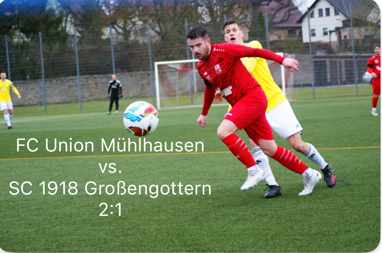 Puh, das Beste an dem verregneten Sonntagnachmittag war das Endresultat. Mit 2:1 gewannen die Jungs von Trainer Patrick Krumbholz gegen einen ordentlich aufspielenden SC 1918 Großengottern. Die haderten am Ende mit der Niederlage, die kurz vor dem Abpfiff durch den verwandelten Foulelfmeter von Sebastian Früh (89.)fix wurde. Rund eine Stunde war kein Klassenunterschied zu erkennen. Die Mühlhäuser hatten vor der Pause offensiv nur eine nennenswerte Aktion durch einen Kopfball Tom Fränkels. Da stand es bereits 0:1 durch Gotterns Rico Baumgardt, der einmal Geburtstagskind Christopher Müller überwinden konnte (24.). Die Unioner agierten gegen aufopferungsvoll verteidigende Gäste ohne Ideen, konnten kaum gefährlich im Strafraum des SC 1918 auftauchen. Der Thüringenligist steigerte sich nach dem Seitenwechsel und einigen Spielerwechseln auf beiden Seiten. Nun erspielte man sich ein Übergewicht und hatte etrliche Tormöglichkeiten. Eine nutzte Leon Gaspar, nachdem sich Maximilian Hottop auf links durchsetzte und flach nach innen passte-1:1 (69.). Es wurden einige Gelegenheiten nicht konzentriert abgeschlossen, so brauchte es ein Foul im Strafraum an Hotti und der Referee zeigte sofort auf den Elfmeterpunkt. Das war insgesamt noch zu wenig für den Rückrundenstart in zwei Wochen bei SV Schott Jena. Dort werden dann höhere Maßstäbe und Qualität von den Eisernen erwartet, wenn man in der Saalestadt bestehen will. Das für Mittwoch geplante Testspiel gegen SV Fortuna Körner sagte der Kreisoberligist krankheitsbedingt ab. Stattdessen treten die Schützlinge von Trainer Patrick Krumbholz am Freitagabend 19 Uhr daheim gegen Landesklässler SpVgg Siebleben 06 an.