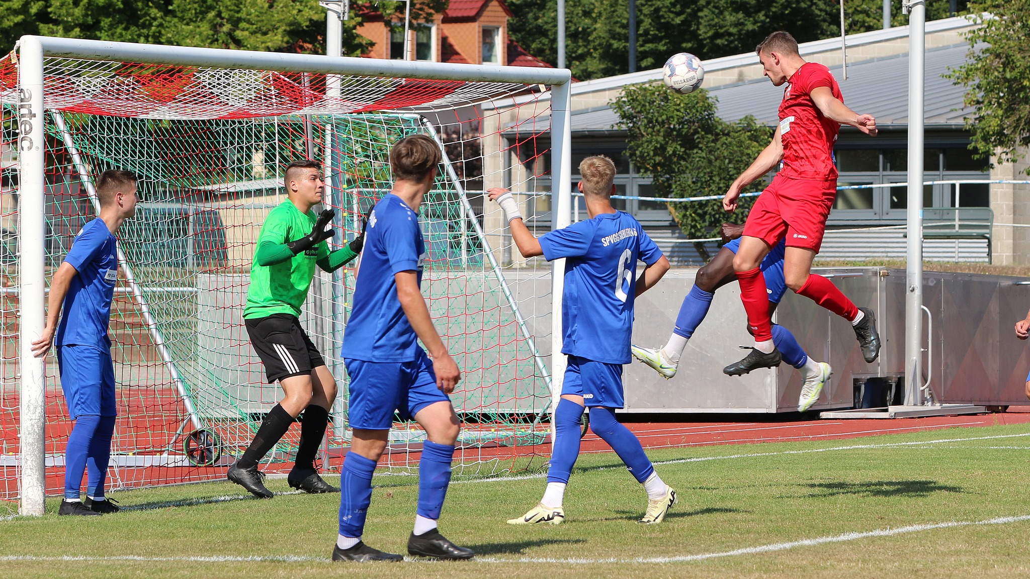 Der vorletzte Test des FC Union Mühlhausen gegen die SpVgg Siebleben 06 war eine hitzige Auseinandersetzung, nicht in Sachen Fair Play, sondern weil der Rasenplatz des Auestadions einem Glutofen glich. So gab es in der flotten Partie für beide Teams mehr als einen Gegner. Es war ein gutes Match der zwei Landesklässler, wobei die Gäste vor allem in Hälfte eins die besseren Torgelegenheiten besaßen. Da konnten sich die Unioner mewhrfach bei ihrem Keeper Simon Appenroth bedanken, dass der seinen Kasten sauber hielt mit tollen Reaktionen. Den Bann brach nach schöner Balleroberung und Steckpass auf Stürmer Jerome Petereit , der A-Junior mit seinem genauen Torschuss-1:0 (39.). Zur Pause brachte Unions Coach Andreas Seipel vier frische Leute von der Bank. Und die Mühlhäuser erhöhten die Schlagzahl im Offensivspiel. Es sah bis zur Schlussviertelstunde nach einem knappen Spielausgang aus, dann wurden die Eisernen noch zielstrebiger im Abschluss. Arne Franke, Maximilian Hottop und Jannis Zimmermann erhöhten auf 4:0, was etwas über das Kräfteverhältnis beider Teams hinwegtäuschte. „Es war für beide heute eine Willensfrage, bei den Temperaturen trotzdem ein temporeiches Match abzuliefern. Es hätte auch ein 7:5 sein können, so viele gute Gelegenheiten gab es auf beiden Seiten. Bei uns hat Simon Appenroth im Kasten eine gute Leistung gezeigt, und uns die Null gesichert“ , freute sich Unions Sportkoordinator Andreas Petereit zwar über den Erfolg für das Selbstvertrauen, aber wollte das 4:0 auch nicht überbewerten.